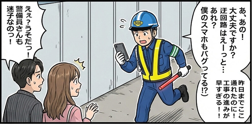 道路上、街中等を問わず、工事(現場)の内外の接点では、